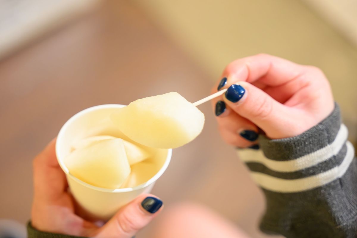 見るだけじゃなくてやっぱり食べたい!「梨のキッチンギャラリー」では、一年中3品種の梨を食べ比べすることができるんです。入館チケットを見せればOK!1人1カップまでもらえます♪