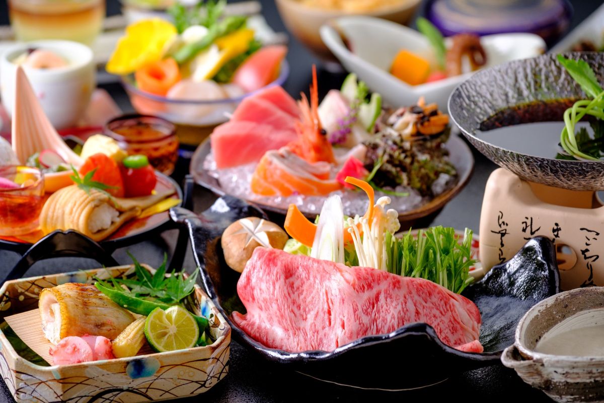 夕食には、地元鳥取でとれる新鮮な食材を使用した会席料理を味わってもはや気分は姫です。おすすめは軟らかく口どけのあるお肉「鳥取和牛」。一品一品においしさが詰まっている豪華なお料理の数々に舌鼓。