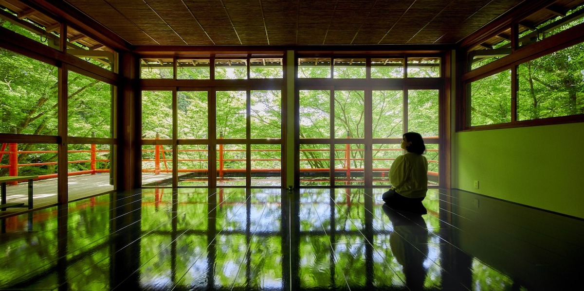 観光地としてあまりにも有名な京都に、人知れずこんなにステキな場所が残っていたのか……。絶景に思わずため息が漏れるこの場所は、京都市東山区「今熊野観音寺」の境内にある「今熊野観音寺 茶所 閑坐(いまくまのかんのんじ ちゃじょ かんざ)」。たくさんのもみじの木に囲まれた空間で虫の声や鳥のさえずりに耳を澄ませつつ、心静かな時間を過ごせます。