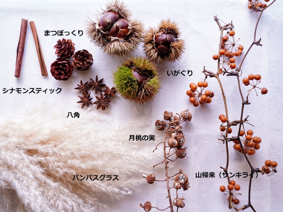 また、秋といえば木の実! 私の写真によく映り込む名アシスタントたちを並べてみました。