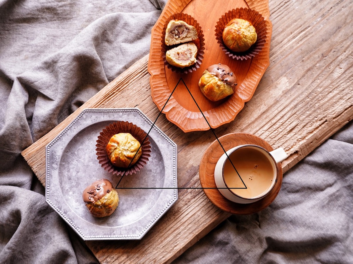 お皿やお菓子は、基本的に三角形を意識して配置しています。