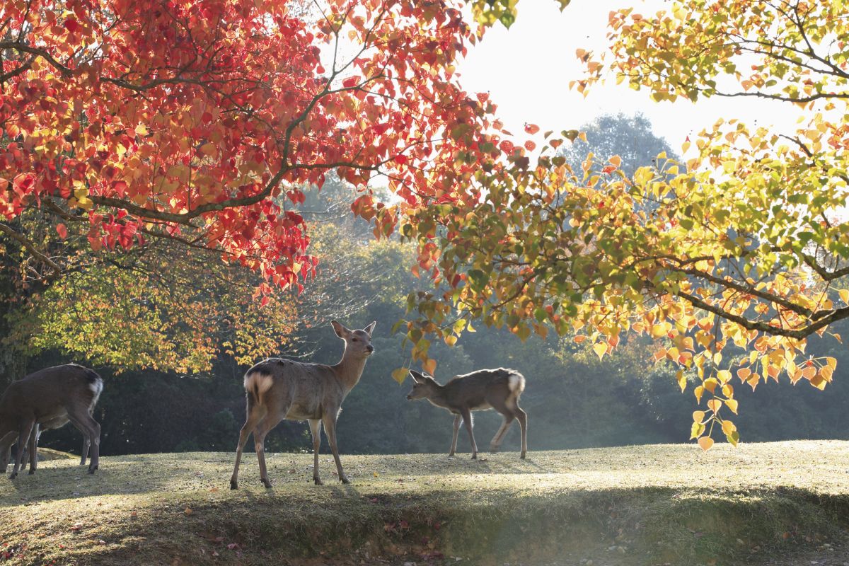 花札の絵柄にもあるように、「紅葉」と「鹿」は本当に絵になりますね。秋の奈良公園を歩いていると、あちらこちらから鹿の鳴く声が聞こえてきて、風情たっぷりです。