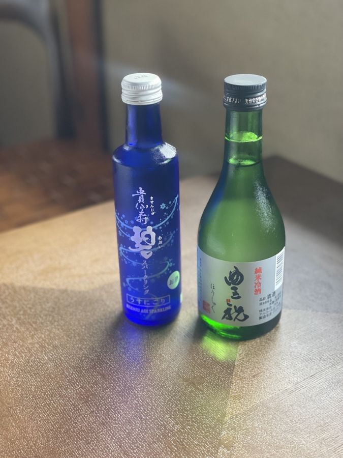 1番のおすすめは、日本酒とお料理のマリアージュを楽しめる、コース料理のペアリング(ディナーペアリング4400円)です。ディナーペアリングの日本酒は、乾杯酒+4杯(4銘柄)。1杯は約0.5合なので、全体で2.5合ほどです。豊澤酒造の蔵元・シェフ・唎酒師・スタッフが厳選した、季節のお料理に合うお酒が楽しめるなんて、究極の贅沢! ワイングラスで提供される日本酒は、キラキラととてもおいしそうです。