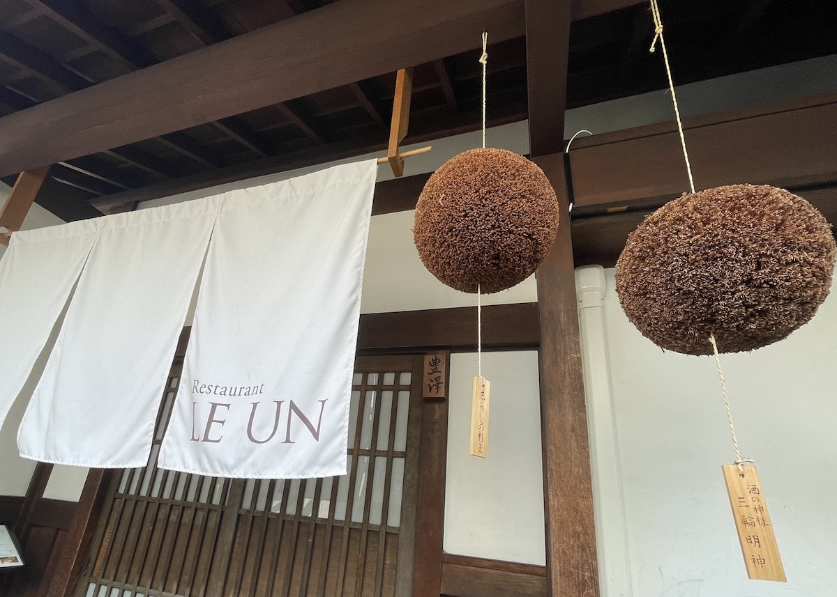 こちらは昔、正面玄関として使われていた、現在のレストランの入り口です。昔のまま「豊澤」の表札がかけられ、軒先には酒蔵のシンボルである杉玉がつり下げられています。「NIPPONIA HOTEL 奈良 ならまち」のあちこちに見られる、日本酒とともに歴史を刻んできた名残を、ぜひ探してみてください。