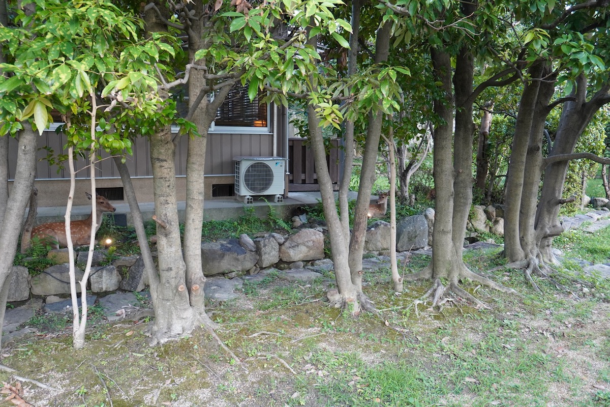 ホテルの庭には、よく鹿が遊びに来ます。客室のすぐ近くまで入って来て、間近で見えることもあるそうです。ちょうど3匹の鹿が庭の木陰で休んでいるところに遭遇しました。かわいい小鹿もいました。鹿を見ると、やっぱりテンションが上がりますね。