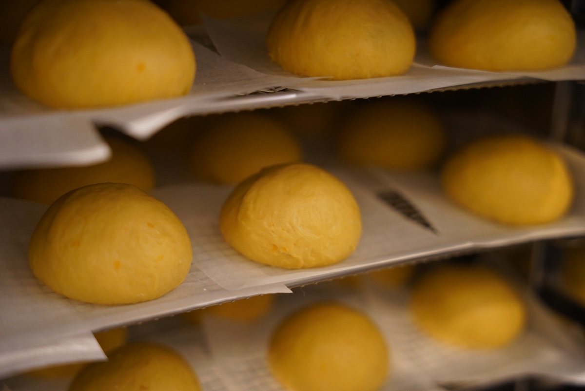 「カスタード」はパティシエの山崎ステイシーリカさんが生地の甘さとのバランスを考えて作った自家製カスタードがイン! カスタードにはバニラビーンズがたっぷり使われていて食べた瞬間にいい香りが広がります。口当たりはなめらかで、甘さはすっきりと仕上げられているので最後までペロリと食べやすいです。