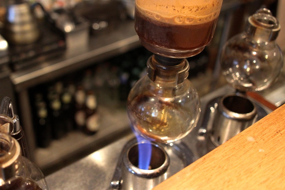 「喫茶cizool」では、コーヒーをサイフォンで入れるのがこだわりの一つです。高温で数秒ドリップすることで、よりクリアな味わいになり、飲みやすくなるのがサイフォンの魅力。