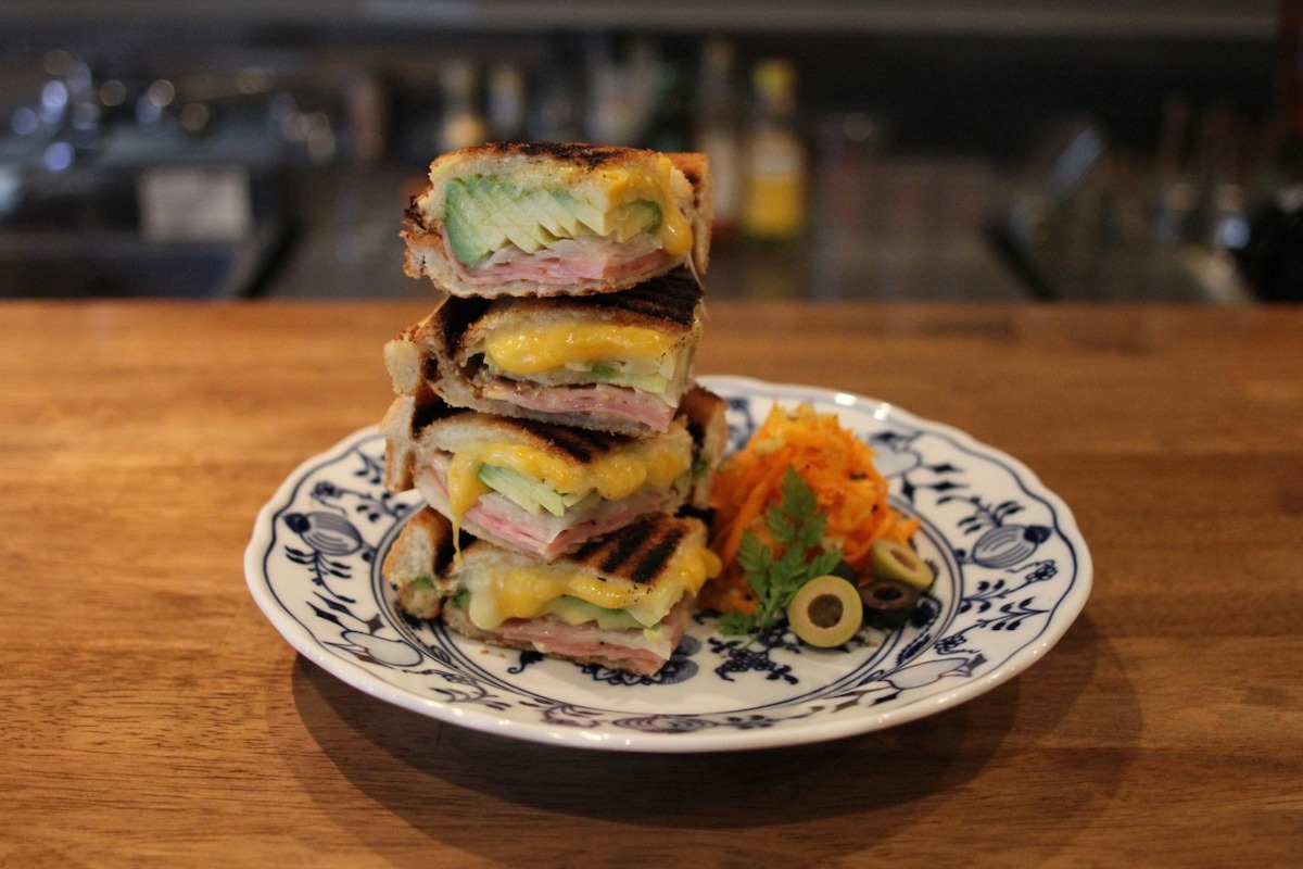 お店で人気のフードメニューは、「アボカドとパストラミのチーズホットサンド」980円。中にアボカドとパストラミがぎっしりと詰まっていて、そこからとろりと溶けていくチーズ……! ボリュームたっぷりで、満足感があるサンドイッチです。