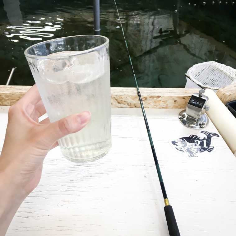 「キャッチ&イート」は、お酒を飲みながら釣りをできるのも魅力!写真は「モヒート」(500円)。女子っぽくて、でもある程度飲める感をアピールできると信じて筆者が飲みの場で必ず頼む飲み物です。さわやかで、でも程よくアルコールも感じられてとってもおいしい〜!