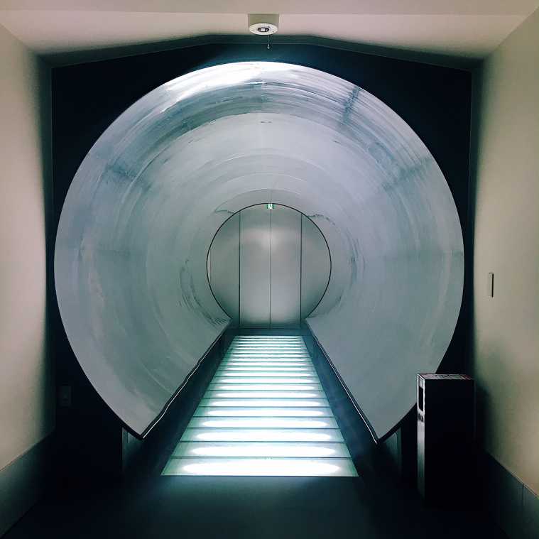 写真は実際に使われていた貯酒タンク。この中を通って、工場内を進むのですが、まるでSF映画のようで大人もワクワクするはず!