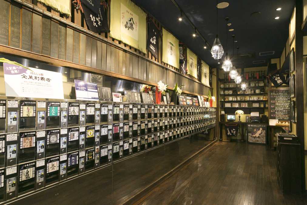 その一角に、ひときわ酒蔵ムードを醸す「唎酒番所」を発見。中に入ると、酒蔵名が書かれたコインロッカー・・・・・・と思いきや、実はこれ、ぜーんぶ唎酒マシン。なんと、新潟の全酒蔵の日本酒が試飲できる空間になっているのです。その数、計111種類!