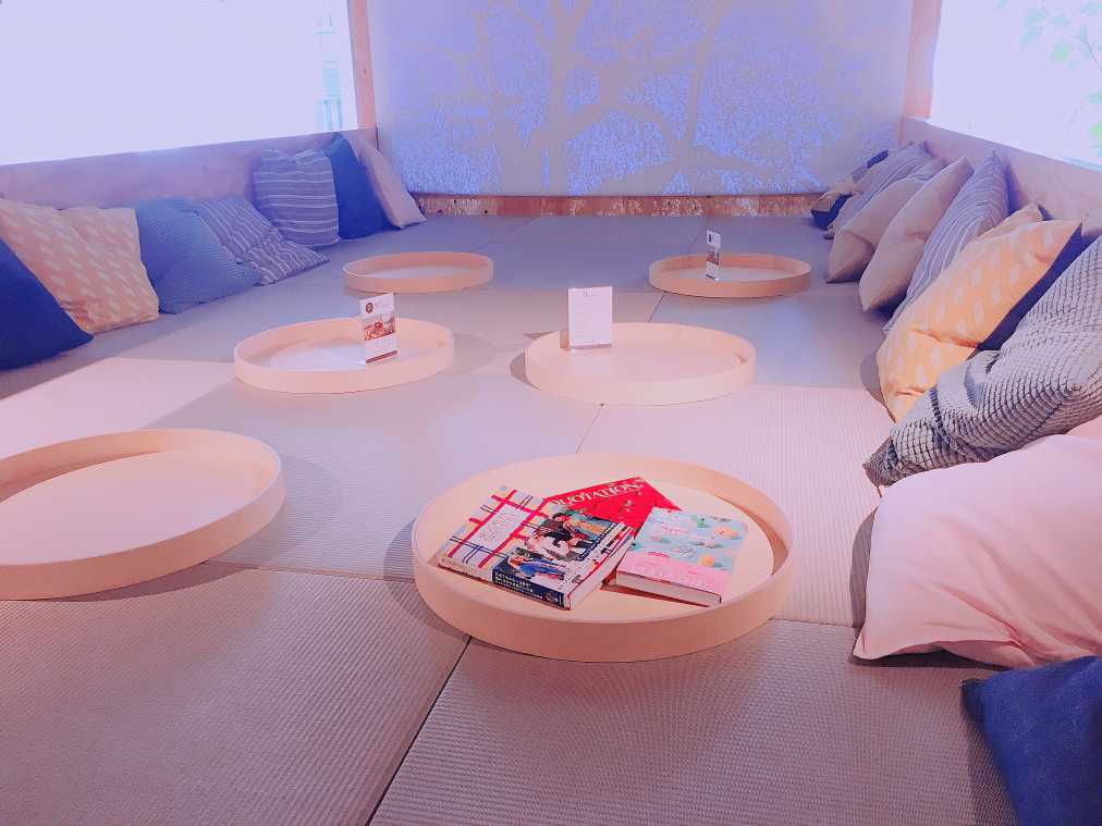 6F女性専用フロアには、畳スペースもあります。畳と丸トレーの組み合わせって、なんだか温泉を連想しませんか?旅館に来たかのようで、まったり気分になってしまいます。