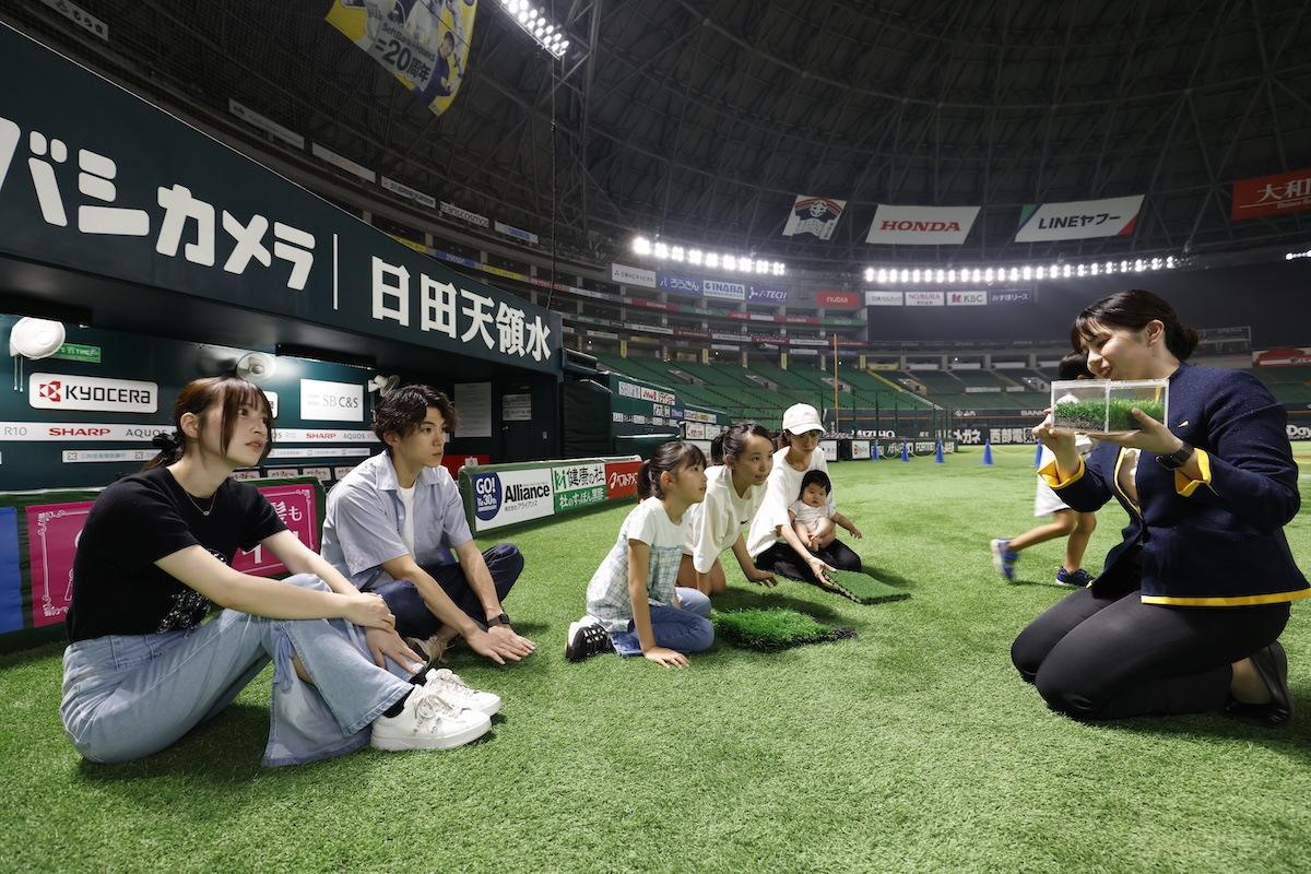 通年行われている「みずほPayPayドーム福岡 ドームツアー」(イベントの開催に支障がない日時のみ)は、プロ野球選手が使用するロッカールームやダグアウト、ブルペンなど、普段は見ることができない球場の舞台裏を、ツアーガイドの説明を聞きながら巡ることができる見学ツアー。ドームの屋根まで上れるコースや、試合後にフィールドでキャッチボール・ベースランニングを楽しめるコースなど、ファミリーはもちろん、カップルでも楽しめるメニューが充実しています。
