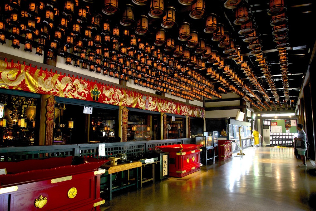 「燈籠堂(とうろうどう)」は弘法大師の御廟を礼拝するお堂で、堂内には2万基以上の献灯が輝いています。正面には1000年以上燃え続けているという「消えずの火」を奉納。堂内及び、御廟の聖域では写真撮影は禁じられています。