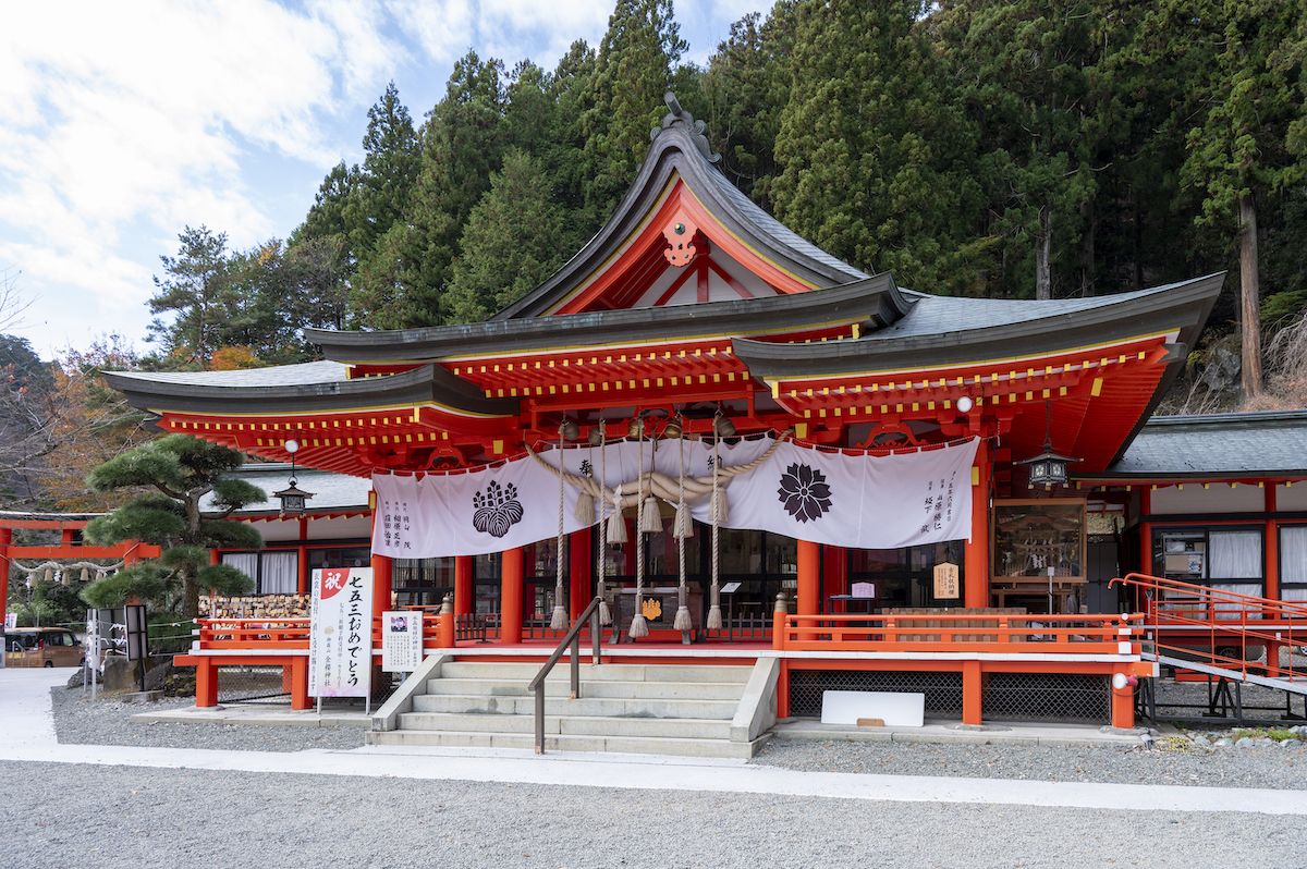 御嶽昇仙峡には、水晶とゆかりが深い神社もあります。それが、御嶽昇仙峡を登りつめた場所にある金櫻神社です。疫病が蔓延し、悪疫退散、万民息災を願い金峰山山頂五丈岩を御神体として本宮を建立しました。御祭神は小彦名命(すくなひこなのみこと)です。