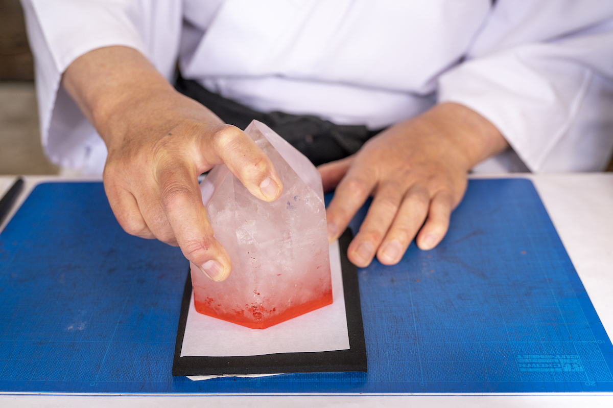 採掘されたばかりの水晶は、まさに原石。匠の技術があるからこそ、水晶に秘められた輝きと魅力が引き出されるのだと、実感できました。