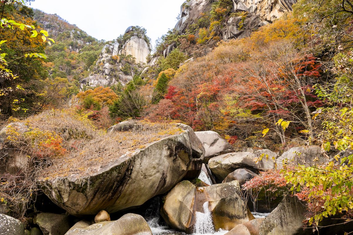 御嶽昇仙峡がある一帯は山地となっており、大小さまざまな滝や巨石、奇岩を目にすることができます。