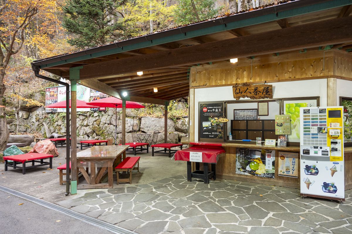おやつ時にぜひ訪れたいのが、御嶽昇仙峡の仙娥滝付近にある「仙人茶屋」。聞くところよると、こちらでは「食べる水晶玉」というスイーツがいただけるそう。