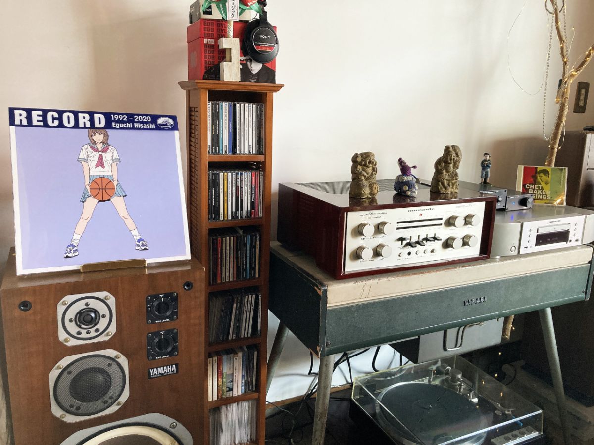 存在感のあるオーディオセットは、小川町に移住してきた音楽評論家の湯浅学さんに選定してもらって揃えたものです。