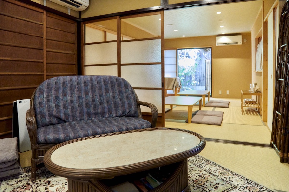 入口から見える部分からは想像できないのですが、奥行きが深い京都の町家。奥には畳座敷が2部屋もあります。