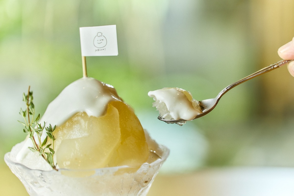 そして、この夏初めて登場したのがかき氷メニュー。10月上旬頃までは「和梨のかき氷」がいただけるそうです。ほどよくやわらかくコンポートした和梨のまろやかな甘さとマスカルポーネチーズの酸味をほのかに感じるクリームとの相性はすばらしく、冷えた氷と一緒に味わうと極上のデザートに。
