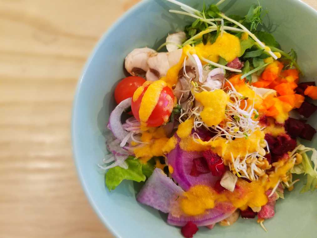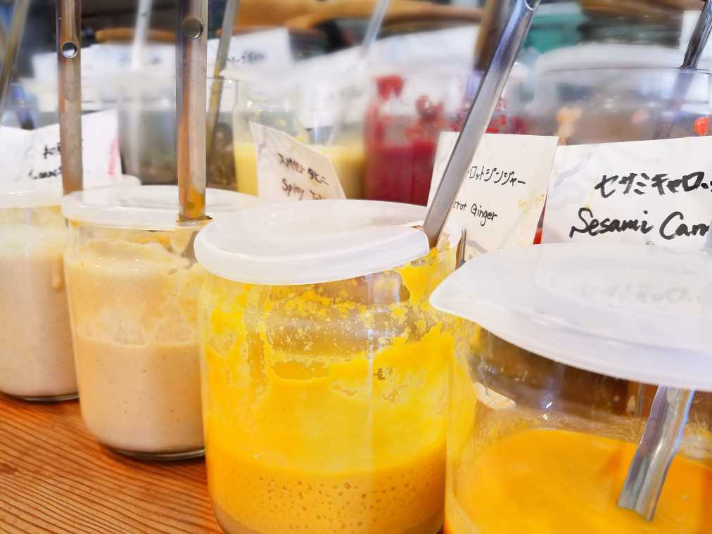 ドレッシングはすべて自家製で、常時10種類ほど用意されています。まずはシンプルにオリーブオイルで素材本来のおいしさを味わってから、次はキャロットジンジャードレッシング、和風ゴマドレッシング…など、味の変化を無限に楽しむことができます。