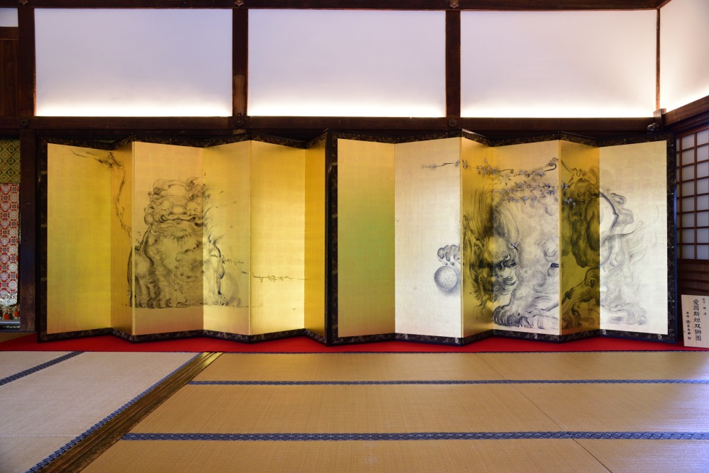 おなじく本堂には、陳満氏が描いた「唐獅子図屏風」も奉納されています。唐獅子とは、中国や日本に伝わる神獣のことで、陳満氏は日本滞在中にこの絵をフリーハンドで描いたのだとか。勇ましさとユーモラスな雰囲気が混じり合ったこちらの作品も必見です。