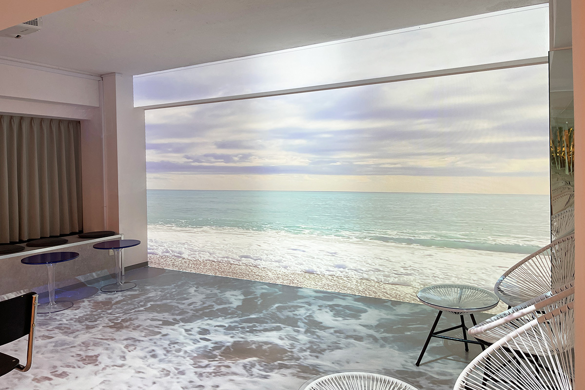 壁だけでなく、足元にも映し出されているので、まるで浜辺を訪れたかのような没入体験ができます。