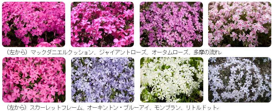 芝桜の品種も昨年から1種類増え、全8品種に。ピンクのほかにも赤や紫、白など、美しい色合いの芝桜が鑑賞できます。