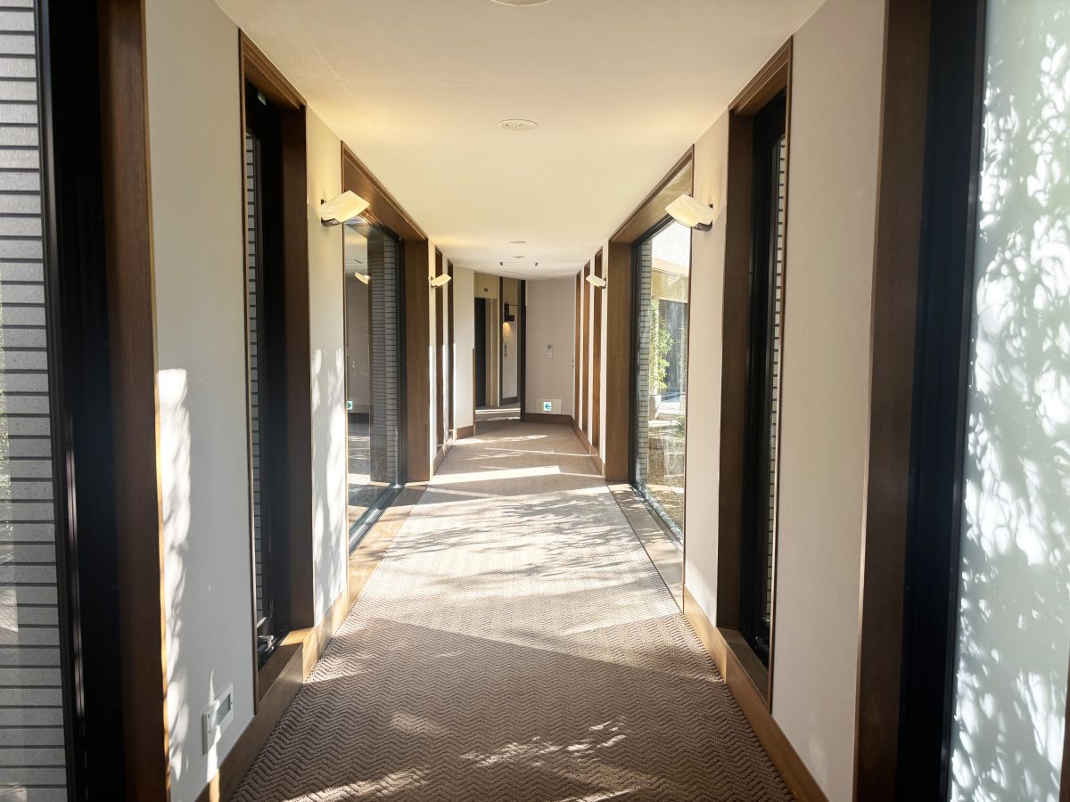 客室に向かう廊下には大きな窓が設置されたスペースがあり、個人的にお気に入り! きれいな庭を見渡せるだけでなく、窓から差す日の光はとてもロマンチックでした♪