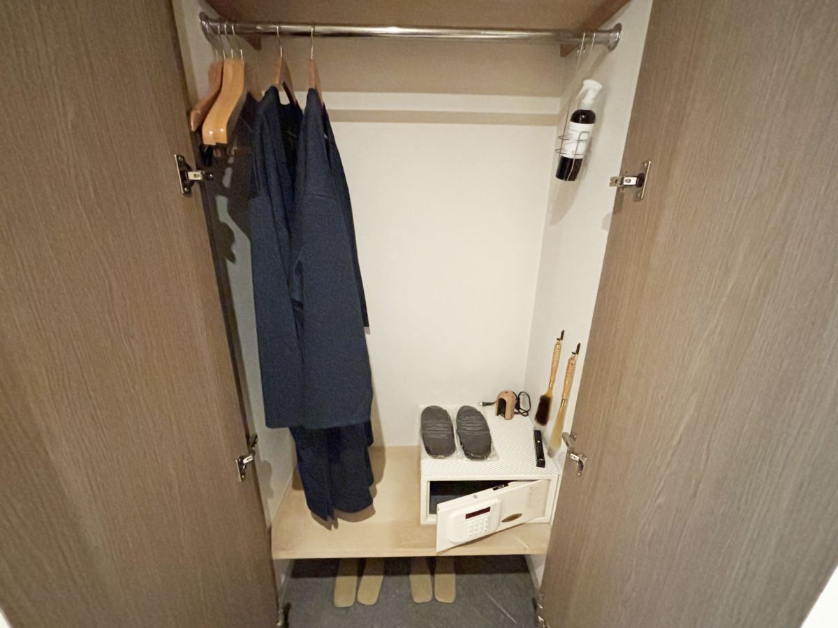 ワードローブは十分にスペースがあるので、長期宿泊でも安心。靴を置くスペースも余裕があります。