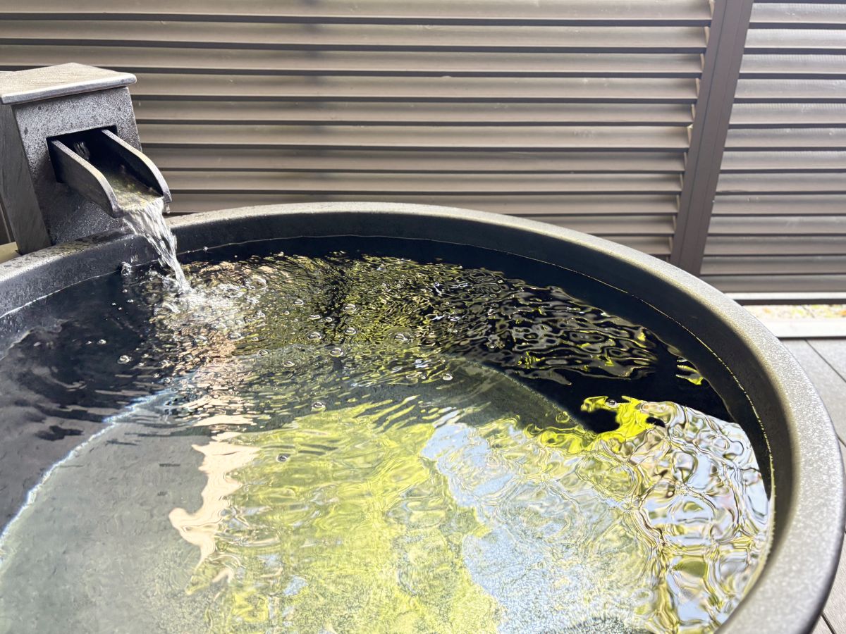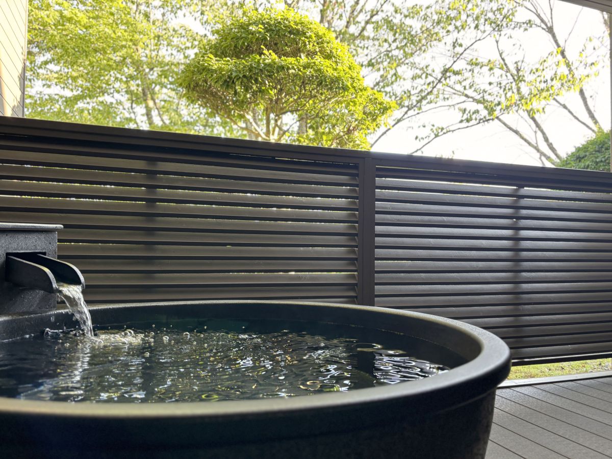 「Deluxe Onsen Twin & Tatami」の魅力はたくさんありますが、最大のポイントはなんといっても客室専用露天風呂。信楽焼の大きな浴槽は、手足を伸ばしても余裕があるサイズ感なので、思う存分くつろげます。