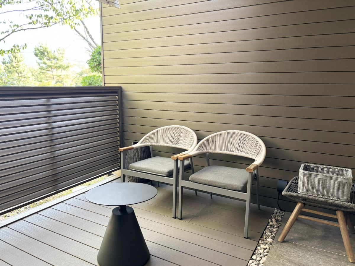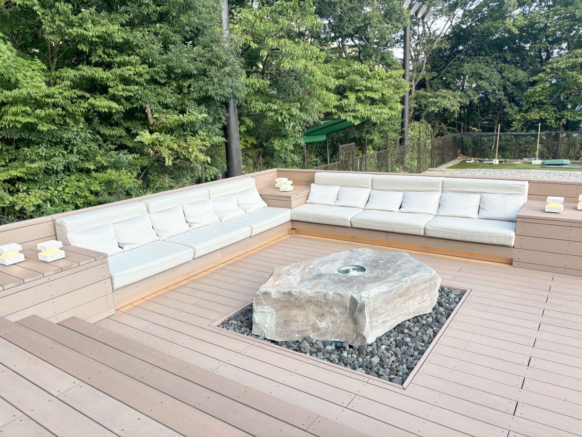パラソルのついたリラックスチェアや、ファイヤーピットがあるテラスは、箱根の山々を一望できるぜいたくなリラックススポット。非日常感たっぷりのリゾートを堪能しながら、箱根の雄大な自然を肌で感じられます。
