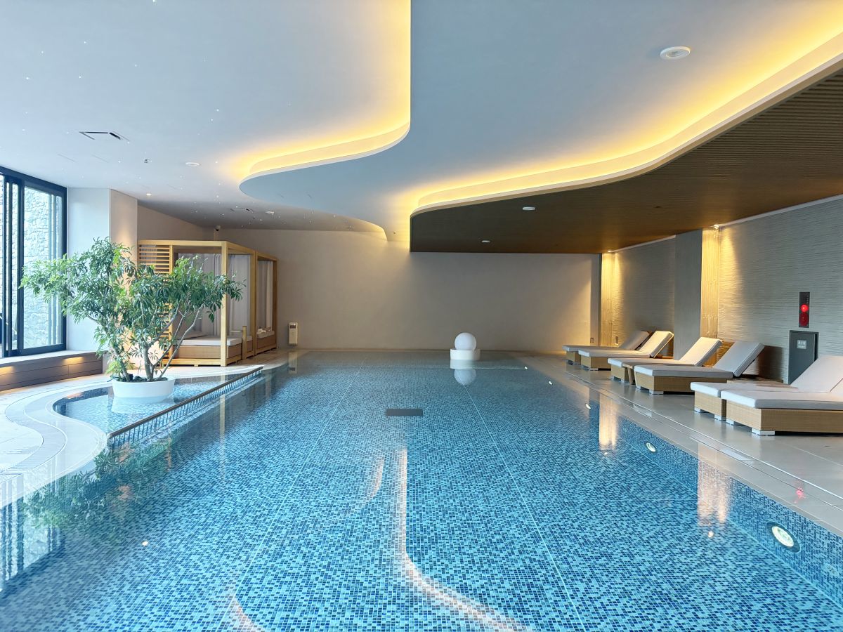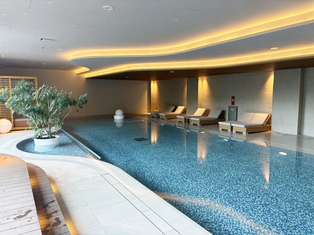曲線のデザインや丸いライトがおしゃれで、大人がプールを楽しむにはうってつけの場所です。夜には天井が星空のようにライトアップされるのも魅力的。
