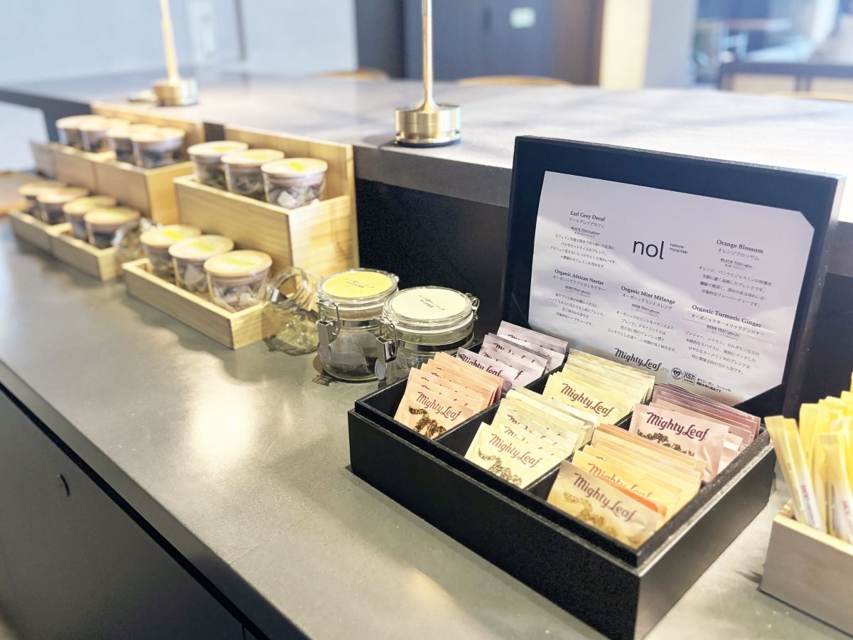 また、ロビーラウンジにはフリーフローがあり、自家製のハーブウォーターをはじめとして、ハーブティーや紅茶、コーヒーなど全10種類以上のドリンクが用意されています。さまざまなドリンクを味わえるのも、ホテルに泊まる際の楽しみになります。