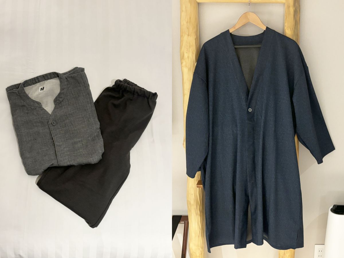客室には、寝巻きとしても使える館内着(写真左)と、寒い時期に重宝する羽織(写真右)を用意。どちらも柔らかな肌ざわりで、着心地もばっちり! まるで家で過ごしているかのようにリラックスできます。