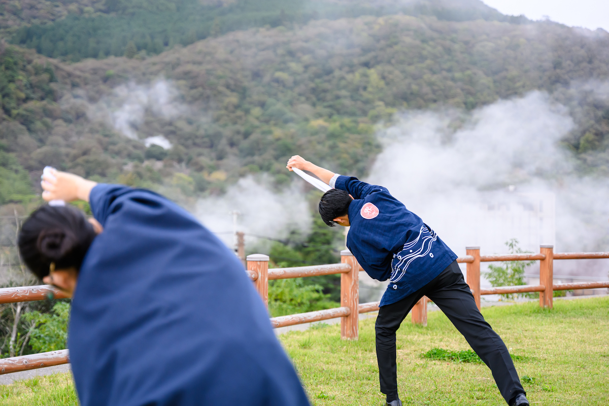 さらに、毎朝7時から開催されている「現代湯治体操」に参加すれば、体をしっかりほぐして、身体を丁寧に整えることができます。「界 雲仙」ならではの、タオルをこん棒に見立てた「雲仙地獄の鬼体操」では体幹が鍛えられますよ!