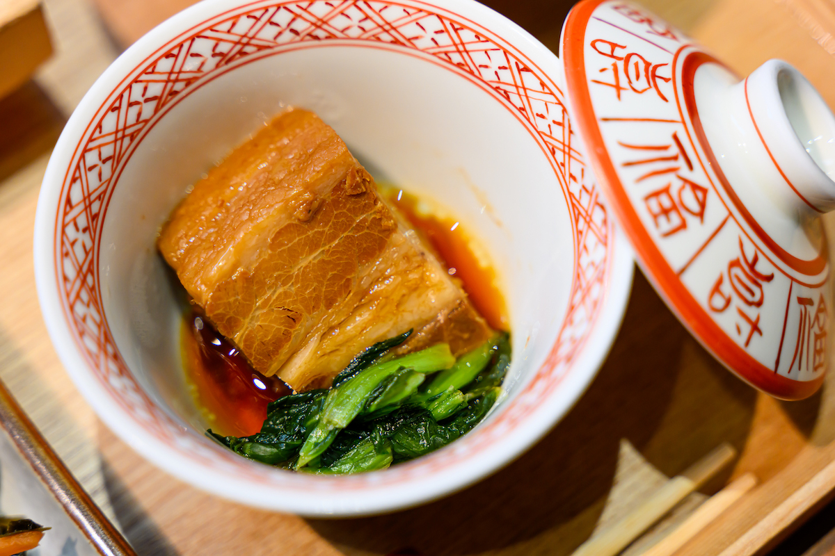 そのほかにも、「牛の生姜煮」、「干し海老の卯の花」など、上品な和食膳で朝から満たされそう。特に、トロトロに軟らかく仕上がった「豚の角煮」はぜひ食べたい一品です。