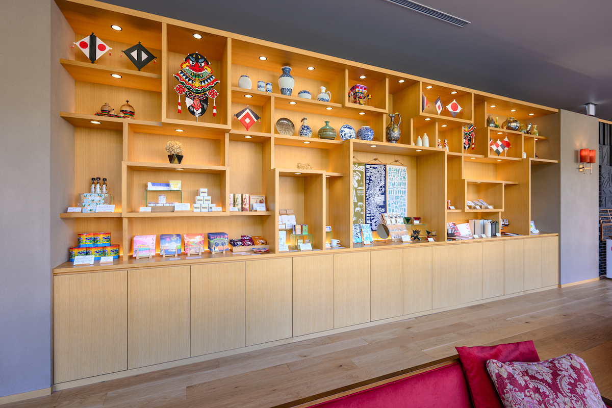 ショップの棚には、長崎・雲仙にまつわる伝統工芸品やグッズ、グルメのおみやげがずらり。夕食にも出てきた雲仙の銘菓である湯せんぺい、ステンドグラスのキーホルダーなど、滞在中に気に入ったものをここで買うことも可能です。