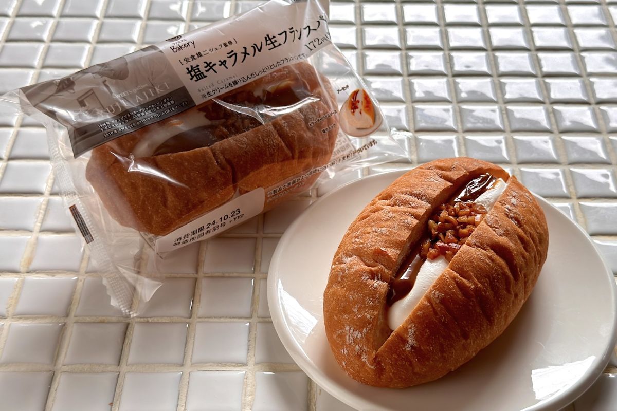 次にご紹介するのは、「塩キャラメル生フランスパン」185円。