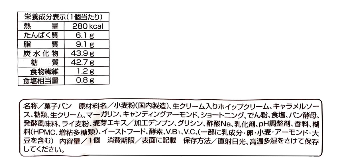 気になるカロリーは1個280Kcal。今回ご紹介している3つの中で、最も低いカロリーです。
