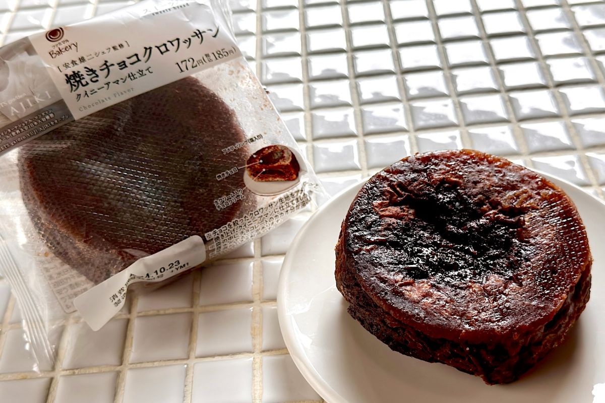 パッケージに入った状態で見ると、丸くて、焦茶色のパンといった印象ですが、焼きチョコ、クロワッサン、クイニーアマンと並ぶワードがなんとも魅力的!
