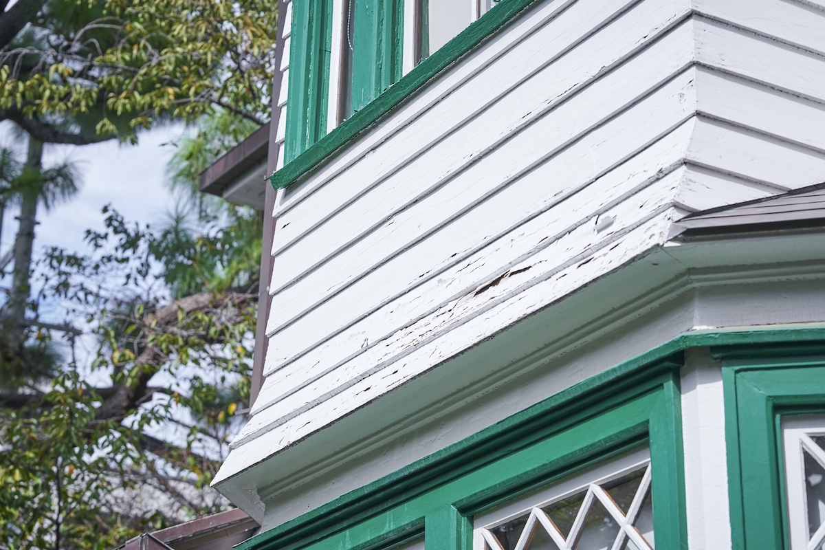 また、カーペンターゴシックのほかにも工夫が凝らされています。壁面には「下見板張り」という木の横板を重ねて貼り合わせる技法が用いられ、雨の侵入を防いでいます。なだらかなスカート状になっているのは全国的に見ても珍しいのだそう。当時の大工の技や遊び心が随所に発見でき、時間を忘れて楽しめます。
