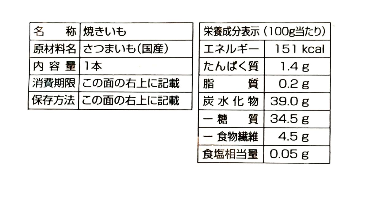 「ひんやり甘い冷やし焼き芋」の原材料名はシンプルにサツマイモのみ。