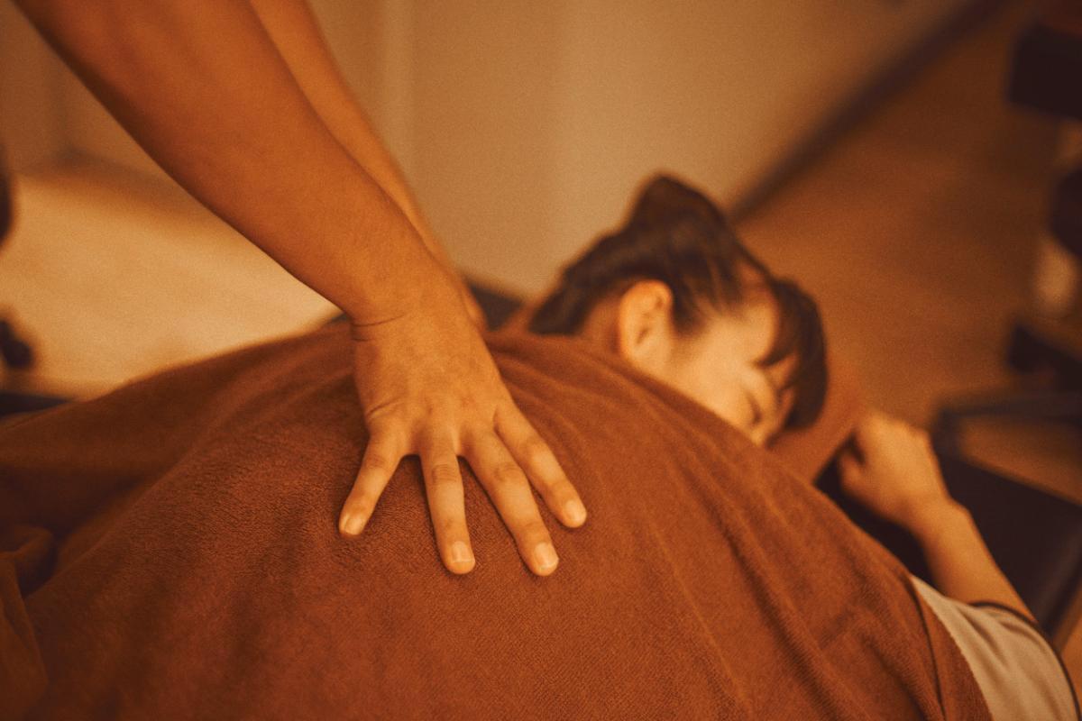 いつものサウナ→食事の流れに加えて、今回はもう一つ。お風呂とサウナで血が巡ったら、リラクゼーションで筋肉をほぐして、流れを良くしてもらいます。