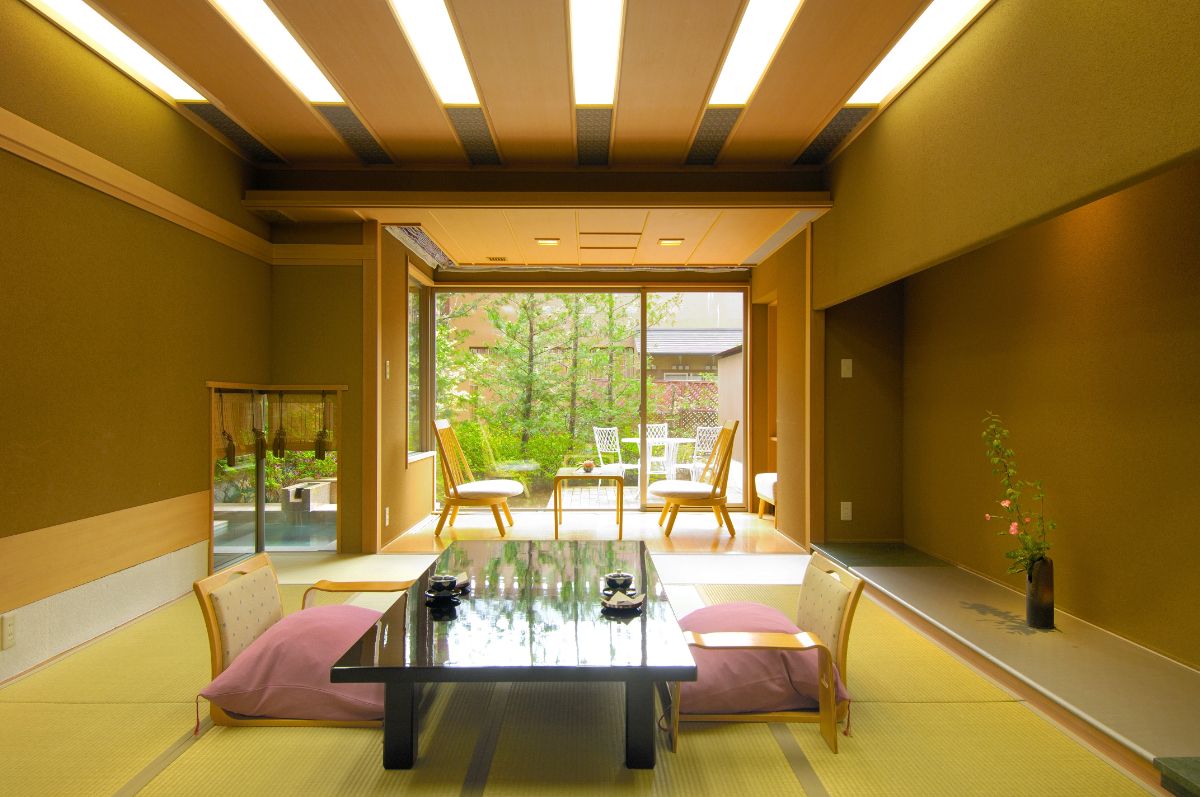 美術館や博物館の点在する箱根・仙石原で、芸術家の息づかいを感じ、自然を満喫できるアトリエ温泉旅館です。客室は全室露天風呂付きで、大涌谷温泉から引いた湯の花が舞う温泉をゆったりと堪能できます。