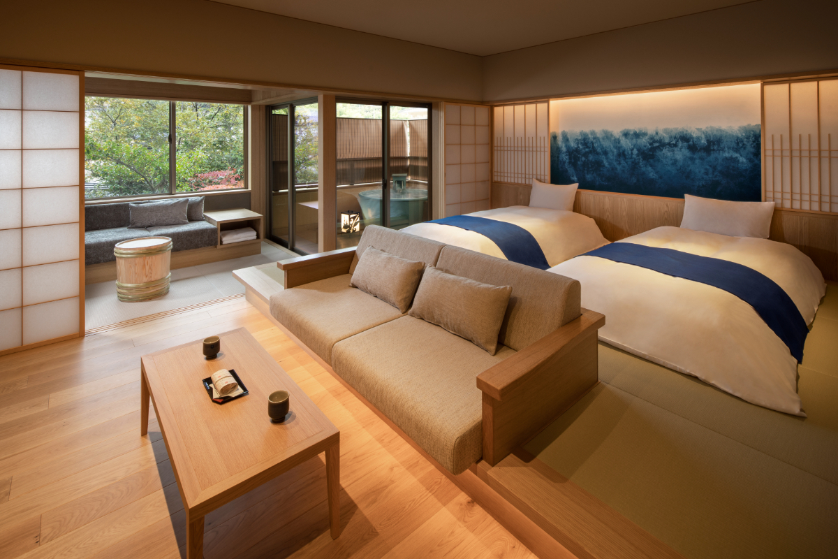 2024年9月5日奥飛騨温泉郷に開業した、「界」ブランドで一番新しい温泉宿です。全客室は随所に天然木のやさしさや、飛騨の魅力を引き出しながらデザインされた「飛騨MOKUの間」。窓やテラスの先には、館内の中庭や飛騨山脈の雄大な景色が広がり、新緑や紅葉、雪景色を間近に望む贅沢なひとときを過ごせます。