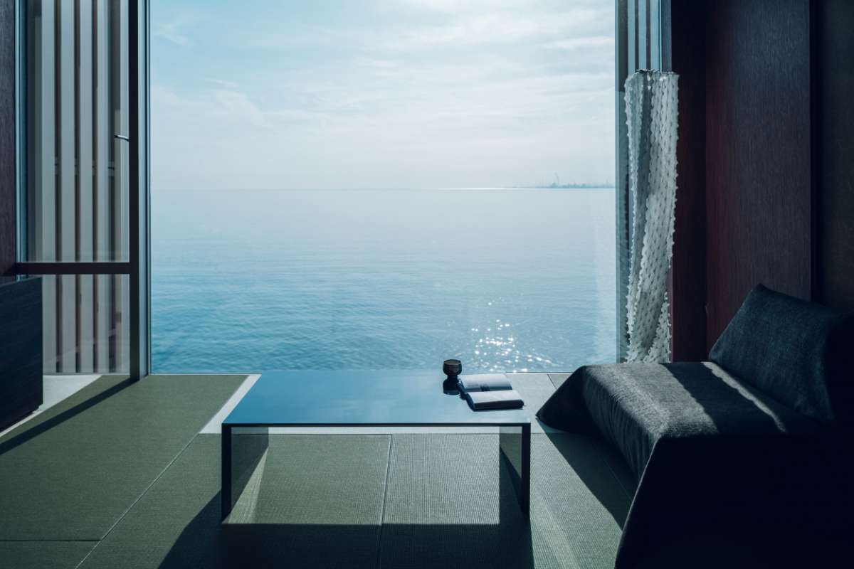 全室から浜名湖の眺望を楽しめ、至る所にお茶のおもてなしが用意された温泉旅館です。滞在シーンに合わせて楽しむ茶葉とお茶を入れる設備の整った客室、お茶玉を使った入浴など、日本一のお茶処にちなんだお茶にまつわるおもてなしが随所にちりばめられています。