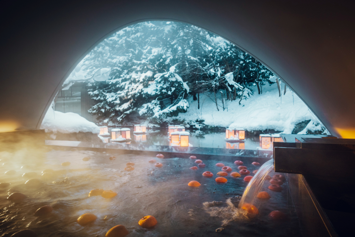 青森県・大鰐町に位置する温泉旅館「界 津軽」には、2024年12月1日(日)~2025年2月28日(金)までの期間、津軽の冬の風物詩であるかまくらを模したアーチ型の屋根が付いた露天風呂「かまくら露天風呂」に「こぎんかまくら」が新たに登場。温泉に浸かりながら「界 津軽」ならではの新しい雪景色を楽しんでみませんか?