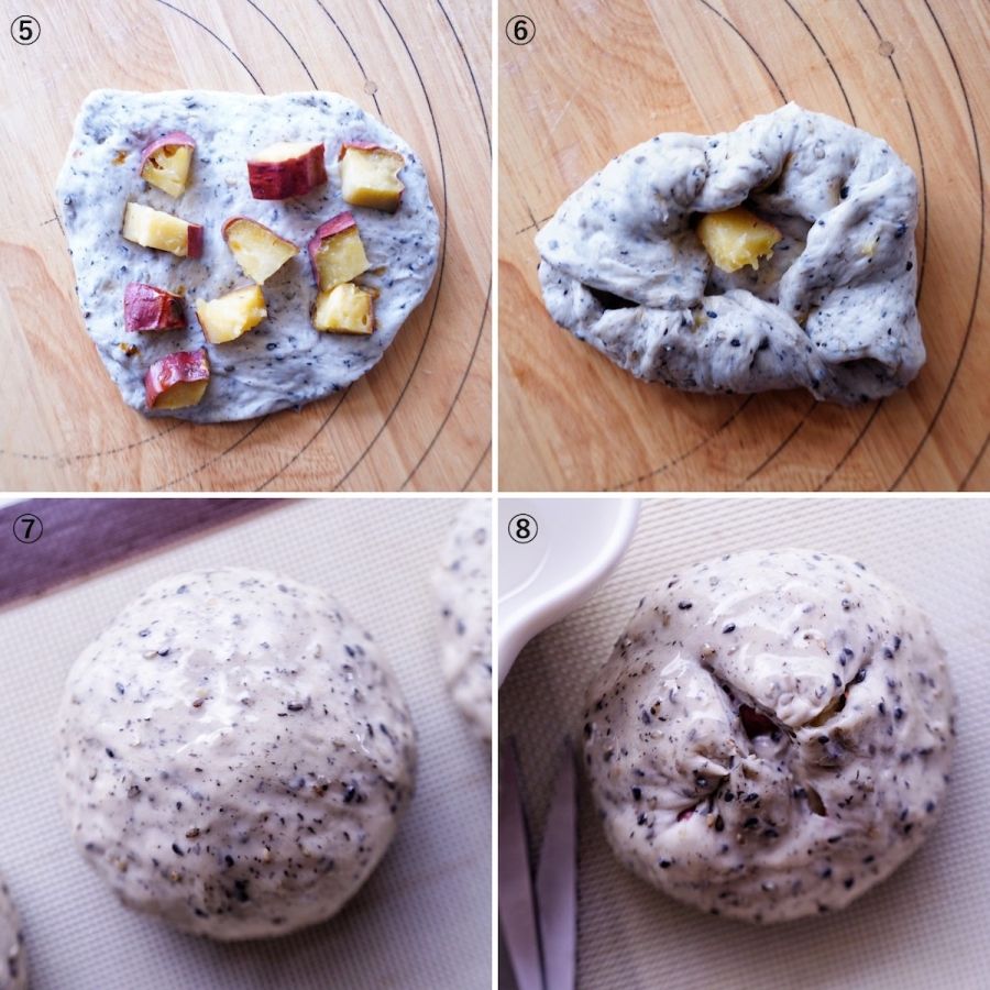 年がら年中サツマイモを食べている私ですが、秋は特別! おいしいお芋を探して、ネットサーフィンしています。特に焼き芋や干し芋には目がなく、いろいろと試しているところです。今回は、手軽に冷凍焼き芋を使って、ぷちぷちした黒ゴマが香るプチパンを作ってみました。ゴマたっぷりのパンを割ると、サツマイモがごろごろ! できあがるまでに少し時間はかかりますが、焼きたてのパンは格別ですよ! 秋の夜長にぜひ作ってみませんか?